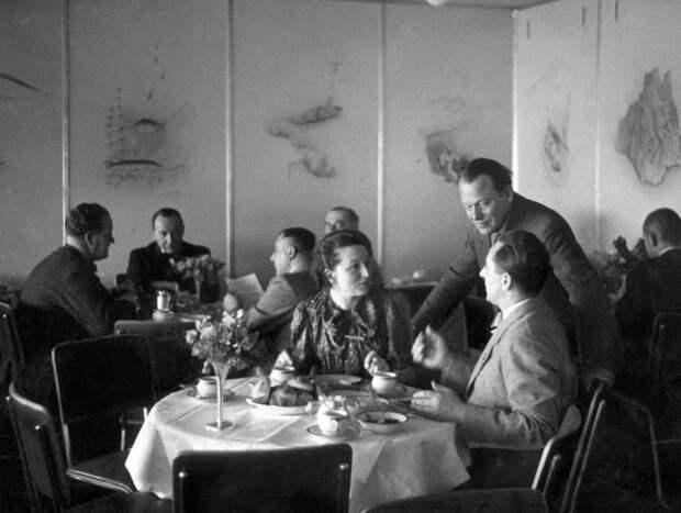 Пассажиры в столовой «Гинденбурга», апрель 1936 года