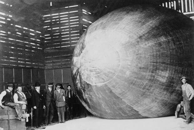 Дирижабль Болдуина в Hammondsport, Нью-Йорк, 1907 год. Томас Скотт Болдуин, второй слева, был майором армии США во время Первой мировой войны. Он стал первым американцем, который спрыгнул с воздушного шара с парашютом