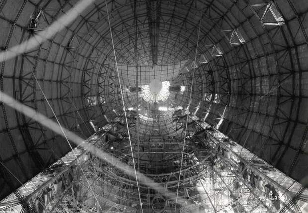 Внутренний корпус дирижабля американского военно-морского флота перед установкой газовых элементов, приблизительно 1933 год.
