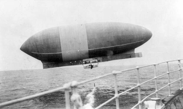 Дирижабль Веллмена «Америка», вид с RMS ТРЕНТА, перемещает якорь, приблизительно 1910 год